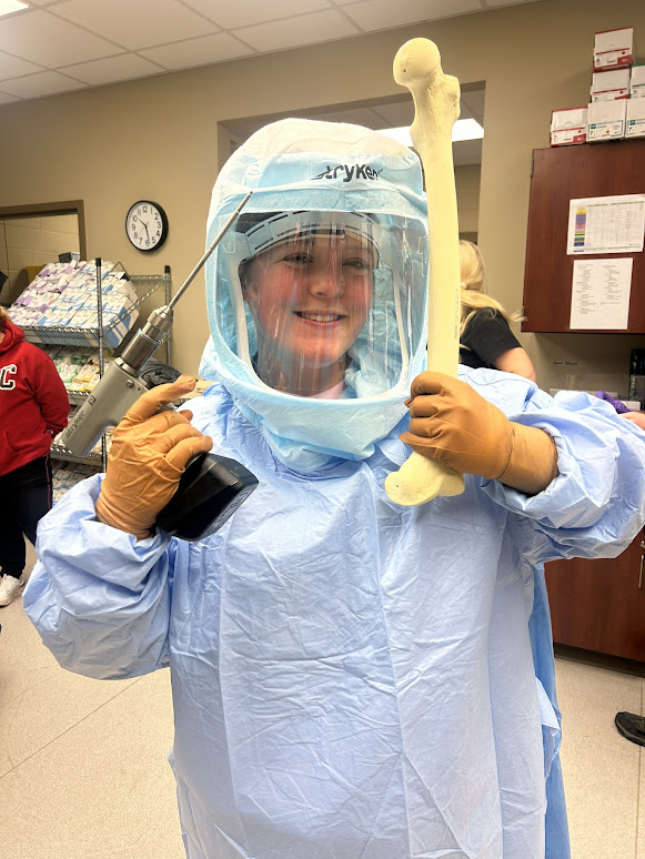“Working in the OR is exciting,” Bunch said. “I am passionate about orthopaedic surgery, so I enjoyed engaging with the instruments and demonstrating how to don the protective suit used in total joint replacements.”